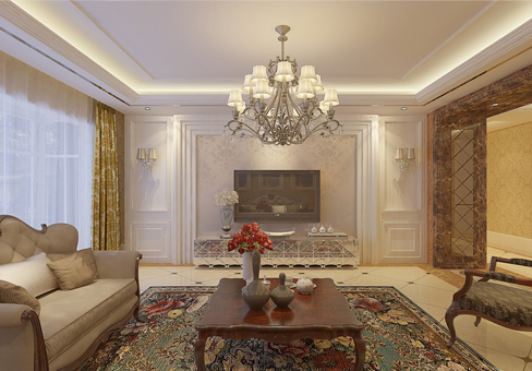 青島歐式效果圖_城陽水悅城130平裝修設計風格/報價