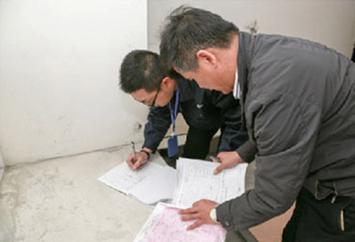 | 督 檢 | 公司督檢人員將專檢驗(yàn)收結(jié)果和現(xiàn)場(chǎng)照片再 次比對(duì),逐一核實(shí)以避免人為疏忽造成的誤差所有可題在下道流程前整改完畢。 |